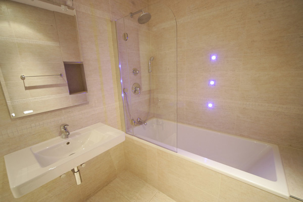 Each room, 20 square meters, with lot of day lights has double queen bed and en suite bathroom with bathtub.